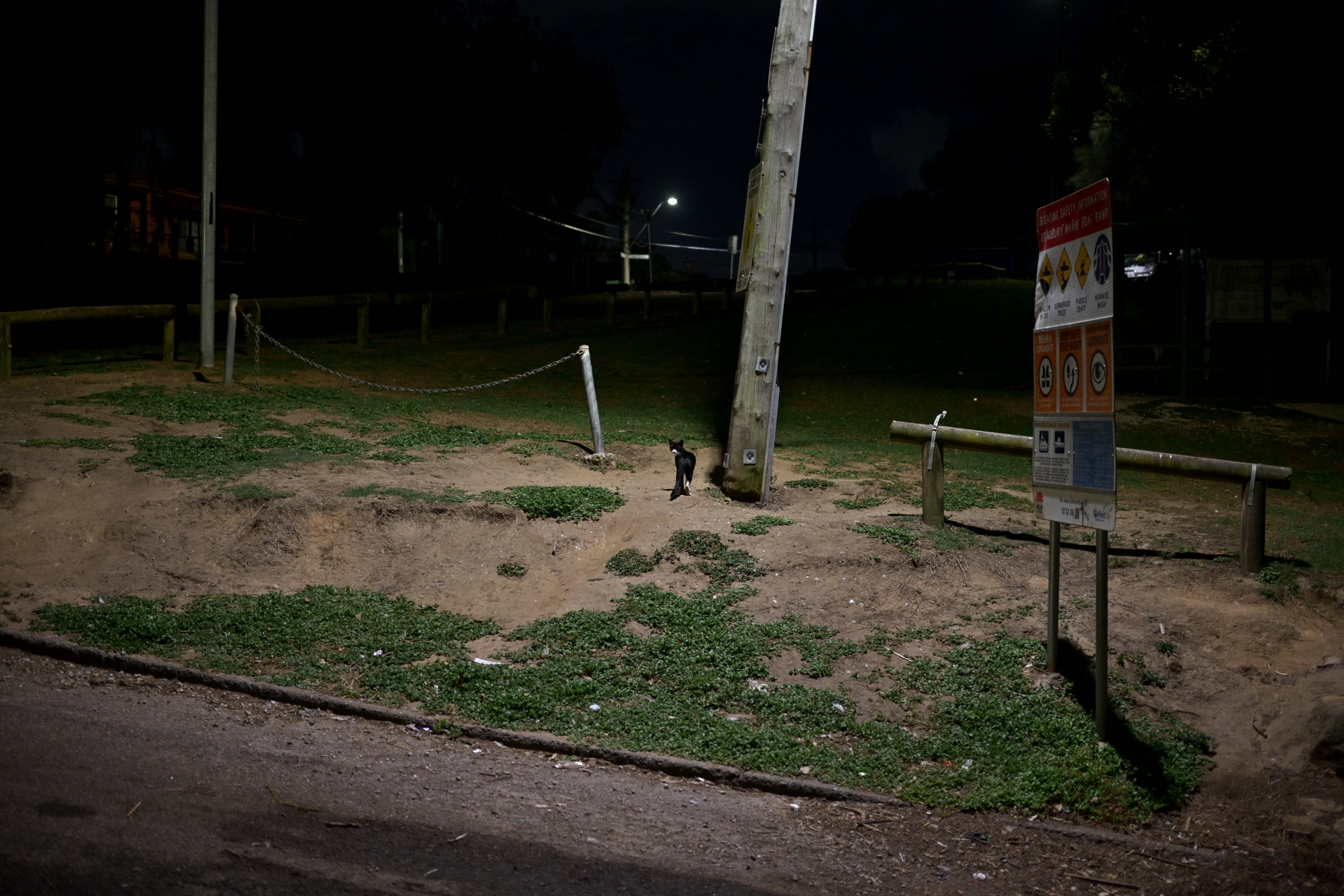 there’s voices around, a cat slinks under a bush